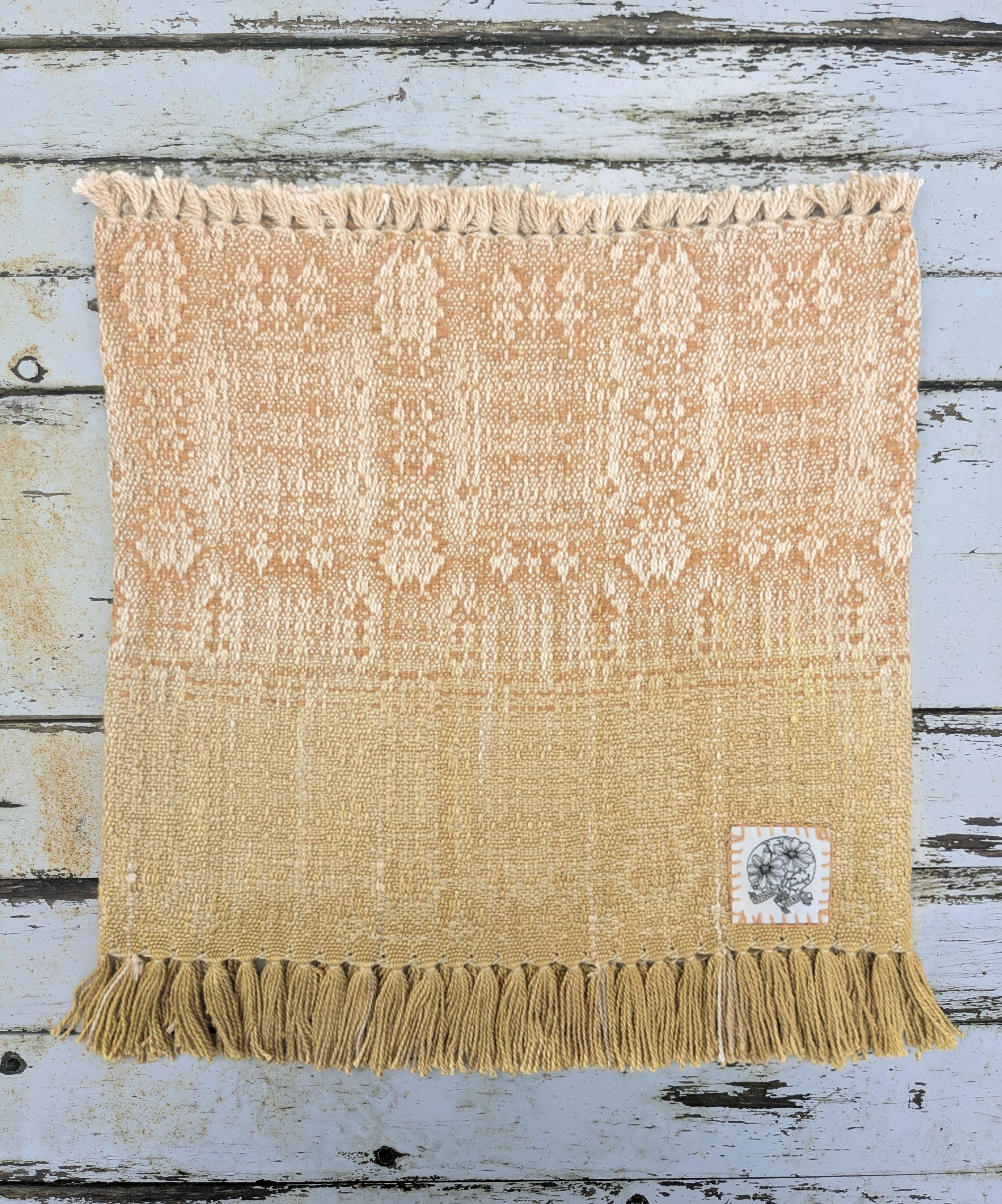 a silky soft handwoven cowl, naturally dyed with organic homegrown coreopsis tinctoria flowers, weld flowers and oak galls.
